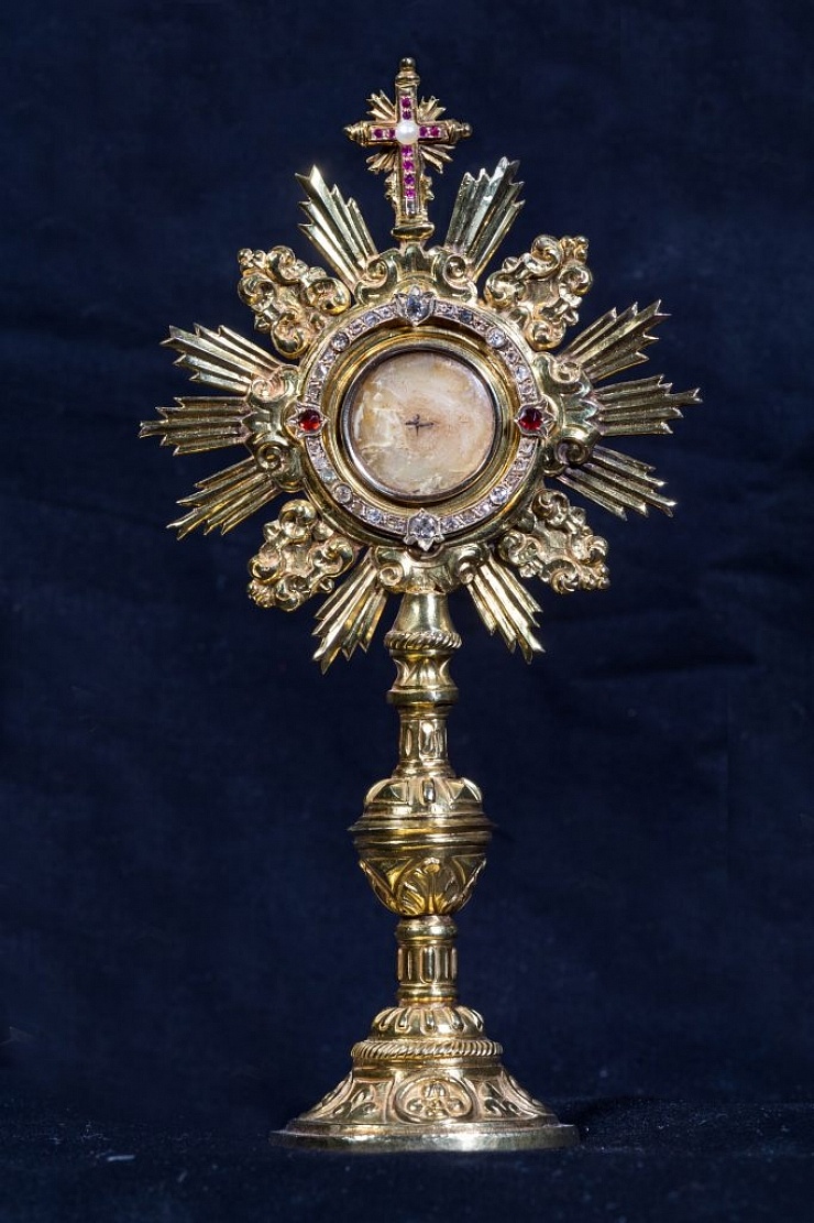 Este viril de oro figura en la capilla frontal del paso del Señor y, a modo de relicario, conserva en su interior una piedra procedente de Tierra Santa.