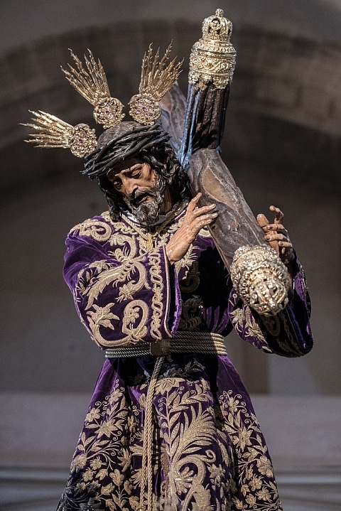 Fotografía de Nuestro Padre Jesús de la Pasión con cruz, la túnica de los acantos de Patrocinio...