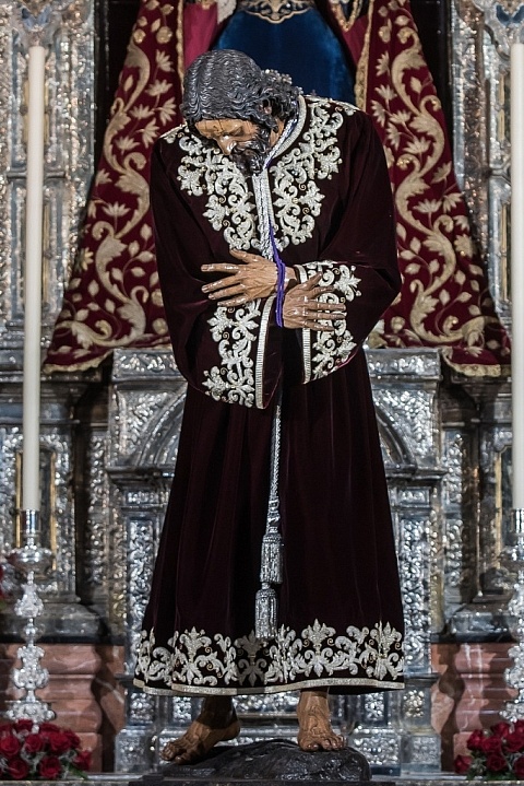Nuestro Padre Jesús de la Pasión, de besapiés, con la túnica bordada por Jesús Rosado en 2017.