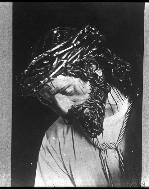 Antigua fotografía, en blanco y negro, de un primer plano de Nuestro Padre Jesús de la...