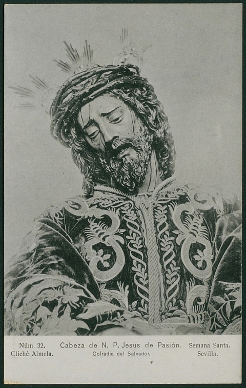 Antigua fotografía de Nuestro Padre Jesús de la Pasión. Primer plano con la túnica de Ariza y con...