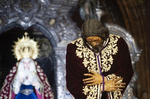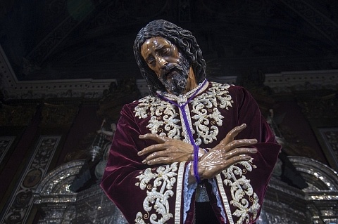 Besapiés del Señor el 2-3 de enero de 2021 en la Capilla Sacramental. El Señor lleva la túnica...