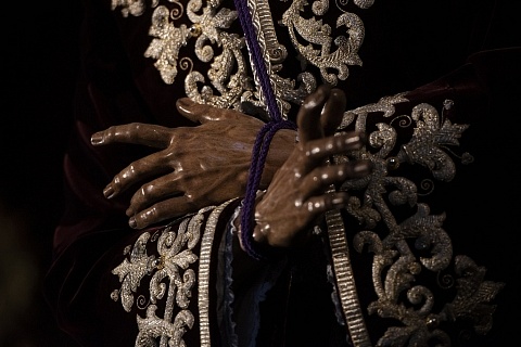 Besapiés del Señor el 2-3 de enero de 2021 en la Capilla Sacramental. Detalle de las...