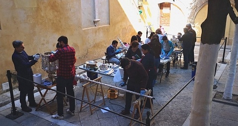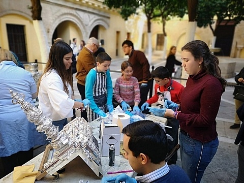 10 de marzo de 2019. Jornada de limpieza de plata en el patio de los naranjos de la colegial.