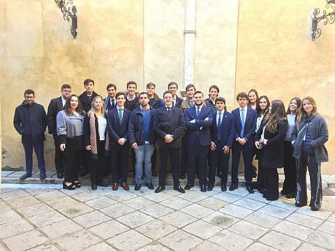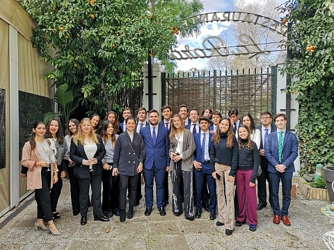 Fotografía del grupo de juventud, en el patio de los naranjos del Salvador, después de la Función...