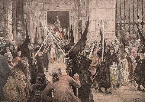SALIDA DE JESÚS DE LA PASIÓN POR LA PUERTA DE LOS PALOS Esta magnífica xilografía iluminada a...