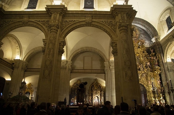 Fotografía, de  M. J. Rechi, del traslado de Nuestro Padre Jesús de la Pasión al al Altar Mayor de la Colegial del Divino Salvador en la tarde del 7 de enero de 2019.