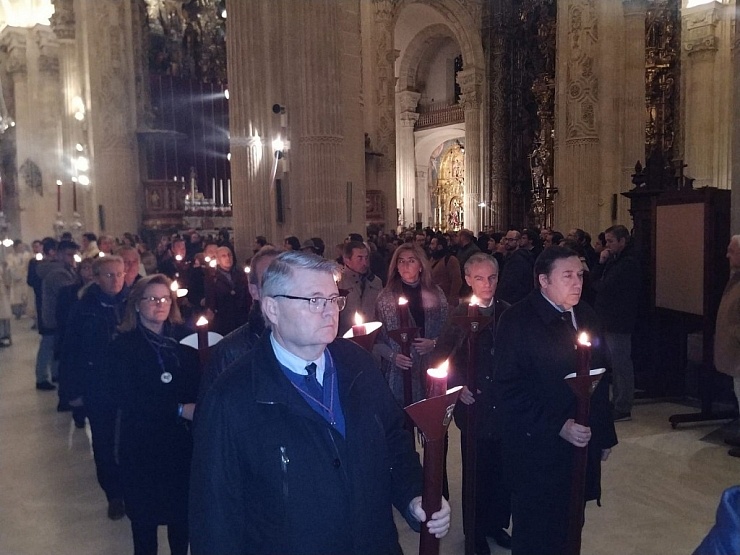 Fotografía, de Cristina Yanes, del traslado de Nuestro Padre Jesús de la Pasión al al Altar Mayor de la Colegial del Divino Salvador en la tarde del 7 de enero de 2019.