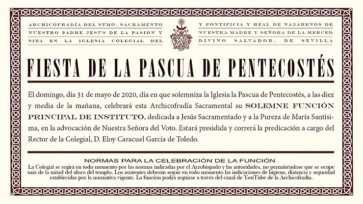Cartel anunciador de la Función Principal de Instituto de la Archicofradía. 31 de mayo de 2020