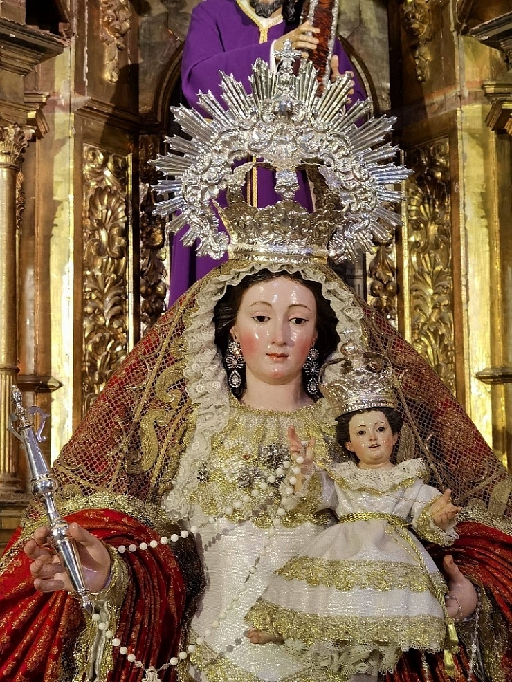 Con motivo de su festividad, el 6 de octubre de 2020, se celebró una misa solemne a las 20 horas, la Virgen del Rosario y el Niño que estrenaron esta vestimenta realizada en tisú de plata con encajes de hojilla de oro en forma de registro. La Virgen llevó además un manto realizado en brocado de oro granate también con encajes de hojilla de oro, todas las piezas realizadas por nuestro hermano José Antonio Grande de León y donadas generosamente por un hermano. Además, la Virgen lució un rosario de filigrana de plata y unos broches de oro y pedrería donados por una hermana. El Niño portó otro rosario en oro, también donado por otra hermana.
