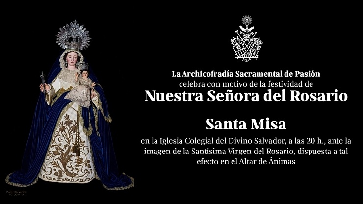 Con motivo de su festividad, el 6 de octubre de 2020, se celebró una misa solemne a las 20 horas, la Virgen del Rosario y el Niño que estrenaron esta vestimenta realizada en tisú de plata con encajes de hojilla de oro en forma de registro. La Virgen llevó además un manto realizado en brocado de oro granate también con encajes de hojilla de oro, todas las piezas realizadas por nuestro hermano José Antonio Grande de León y donadas generosamente por un hermano. Además, la Virgen lució un rosario de filigrana de plata y unos broches de oro y pedrería donados por una hermana. El Niño portó otro rosario en oro, también donado por otra hermana.