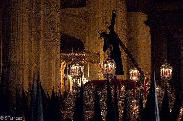 Nuestro Padre Jesús de la Pasión una vez realizada la entrada en la Colegial del Salvador antes de colocarse en su ubicación.