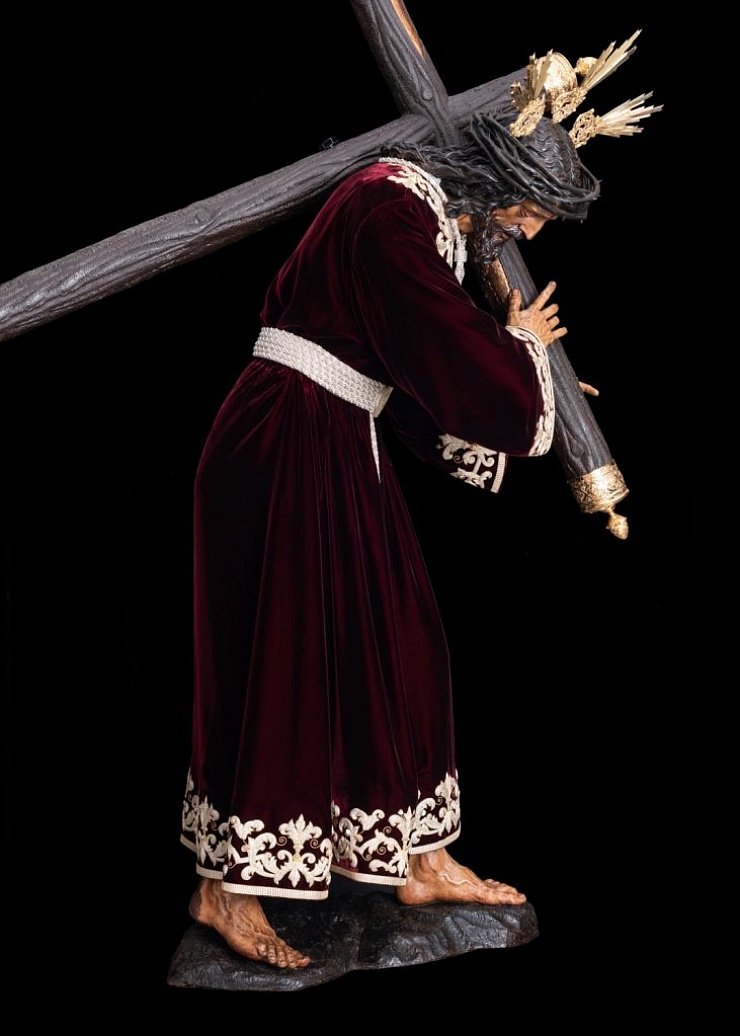 Perfil derecho del Señor de cuerpo entero con la cruz, corona de espinas y potencias de salida.