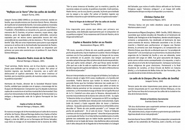 Tríptico del programa del concierto «Tesoros musicales de Pasión».