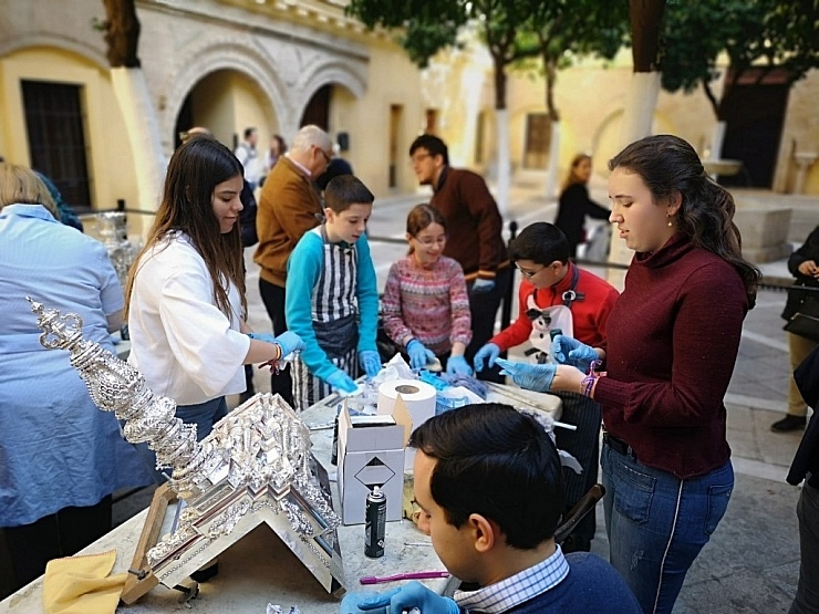 Jornada de limpieza de plata en el patio de los naranjos de la colegial.