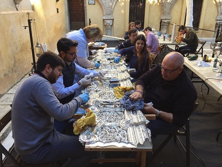 Jornada de limpieza de plata en el patio de los naranjos de la colegial.