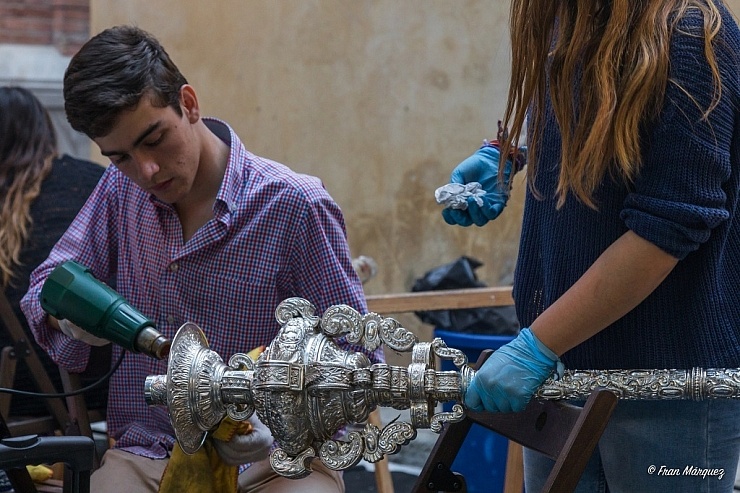 Jornada de limpieza de plata en el patio de los naranjos de la colegial.