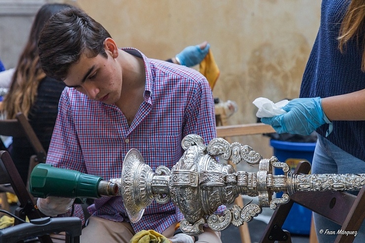 Jornada de limpieza de plata en el patio de los naranjos de la colegial.
