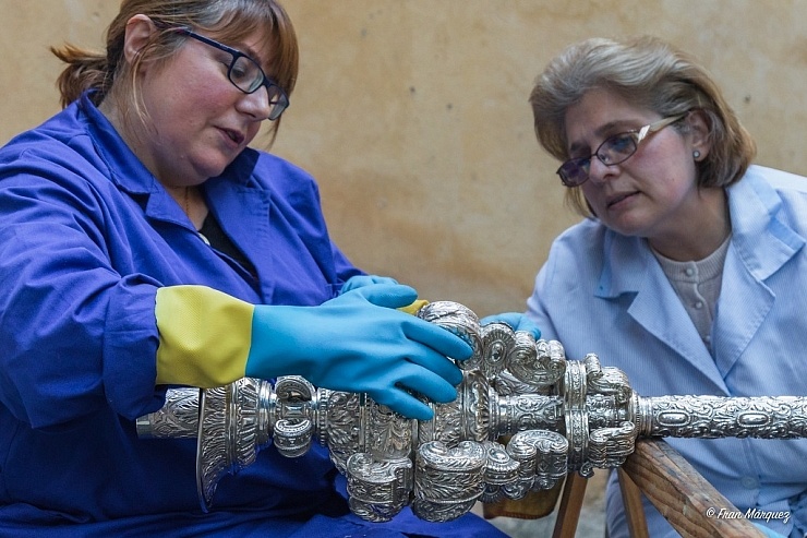 Jornada de limpieza de plata en el patio de los naranjos de la colegial.