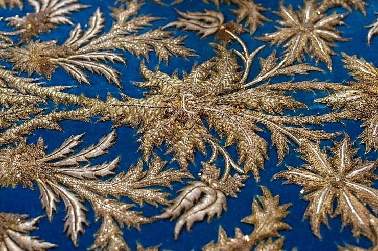 15 de julio de 2019. Seguimiento, de la Comisión designada por la Hermandad, de la restauración del techo de palio en el taller del bordador Jesús Rosado en Écija.