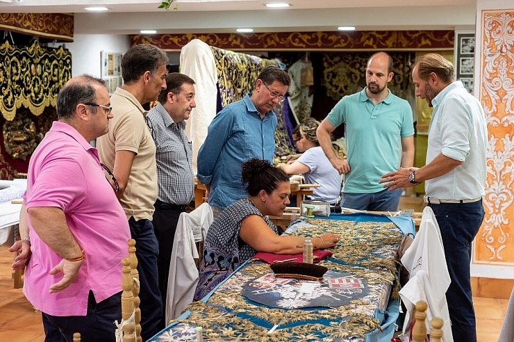 15 de julio de 2019. Seguimiento, de la Comisión designada por la Hermandad, de la restauración del techo de palio en el taller del bordador Jesús Rosado en Écija.